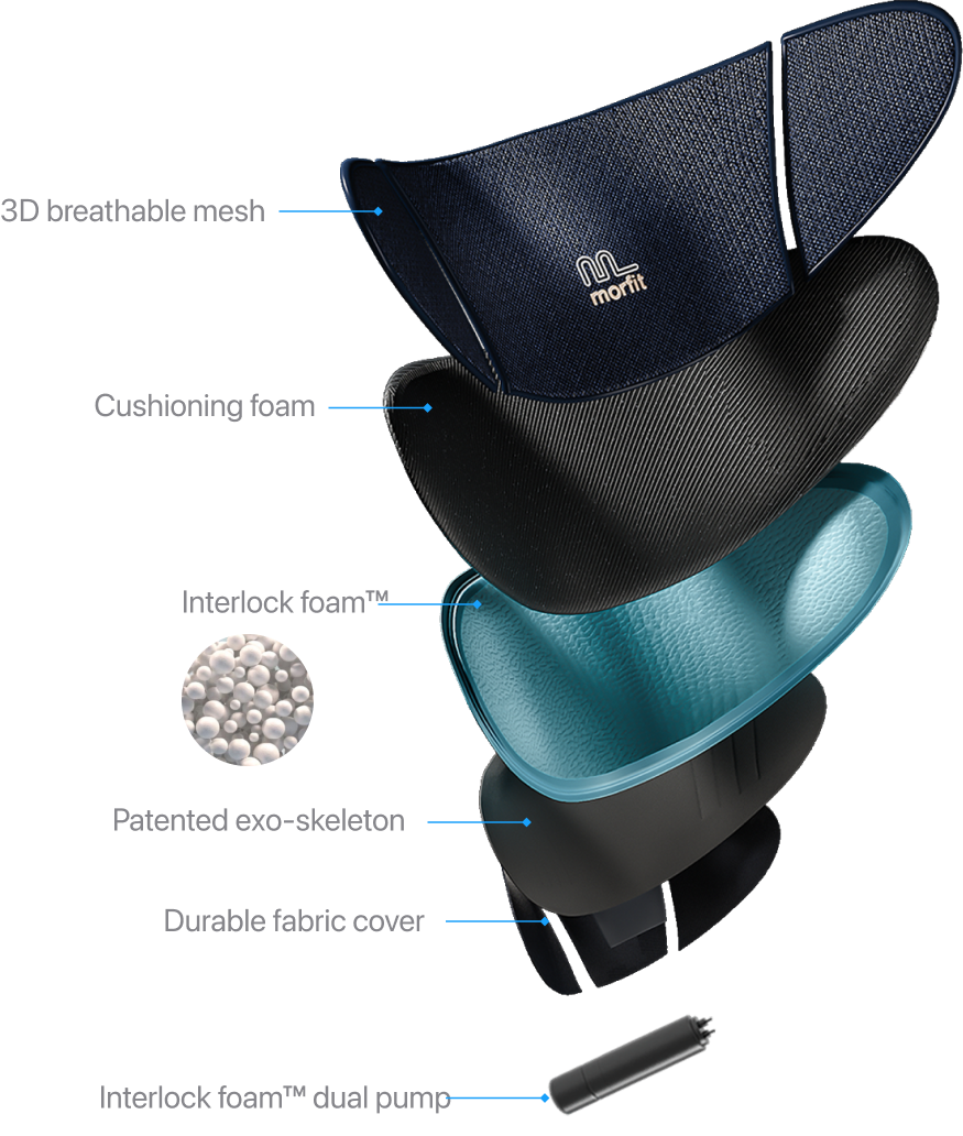 Morfit® moulds to fit your shape, capturing every curve of your spine. Unlike memory foam, it remembers your shape.